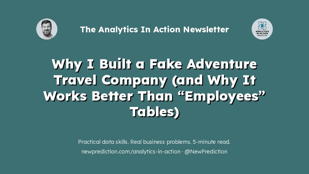 Hey Reader, Over the past few weeks, I’ve shown you The Mister Rogers Blueprint in action using Summit Adventures, the fictional adventure travel company I built for teaching. You’ve seen real queries. Real business insights. Real data quality issues. Today I want to tell you why I built it this way. Because the reason matters more than you might think. The endless tutorial hamster wheel of death You know the pattern. You watch a Udemy course. It makes sense. The instructor shows you SELECT,...